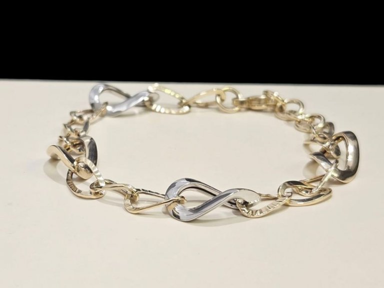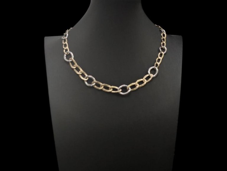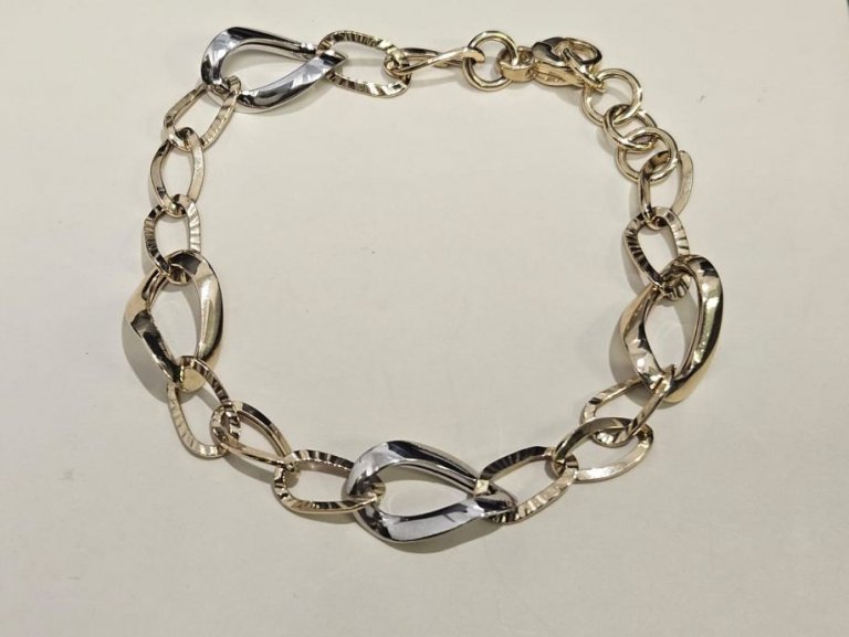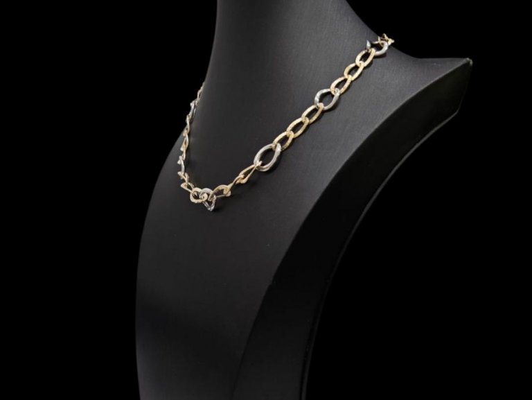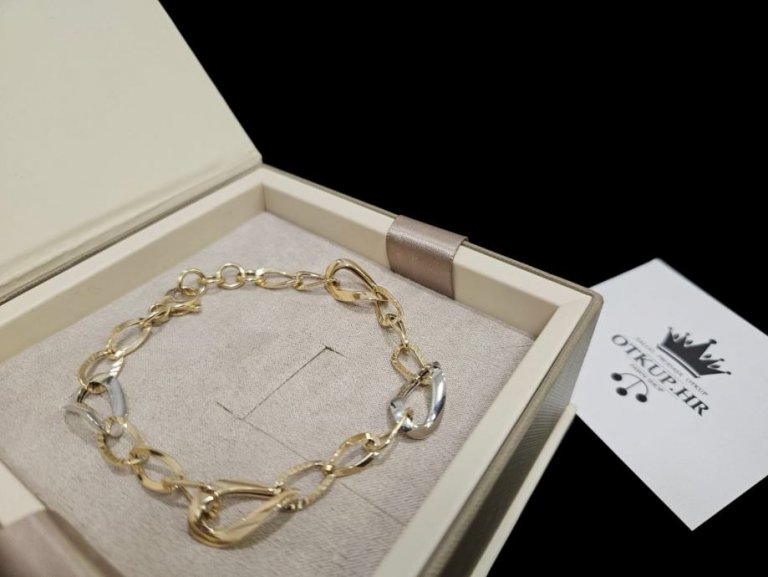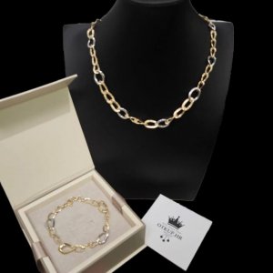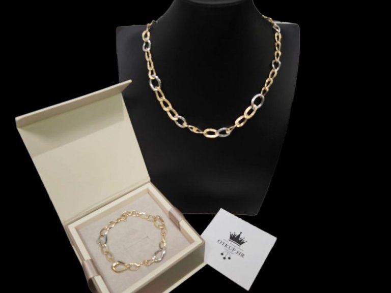 Prodajemo prekrasan komplet zlatna ogrlica +narukvica od 14 karatnog kombinacija žutog i bijelog zlata.