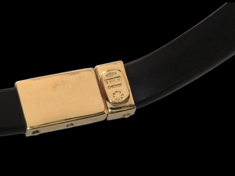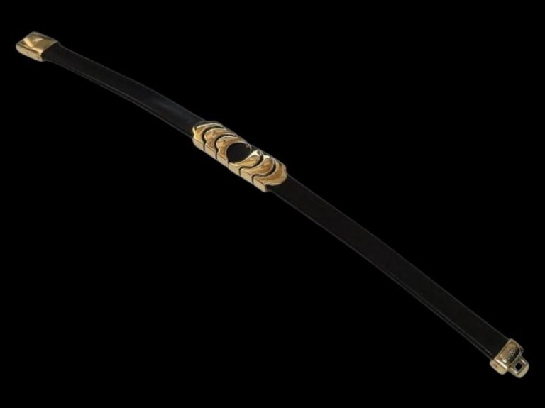 Prodajemo narukvicu kombinacija kaučuk – 18 karatno žuto zlato.