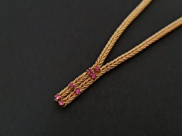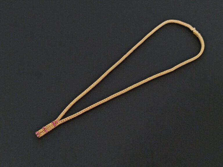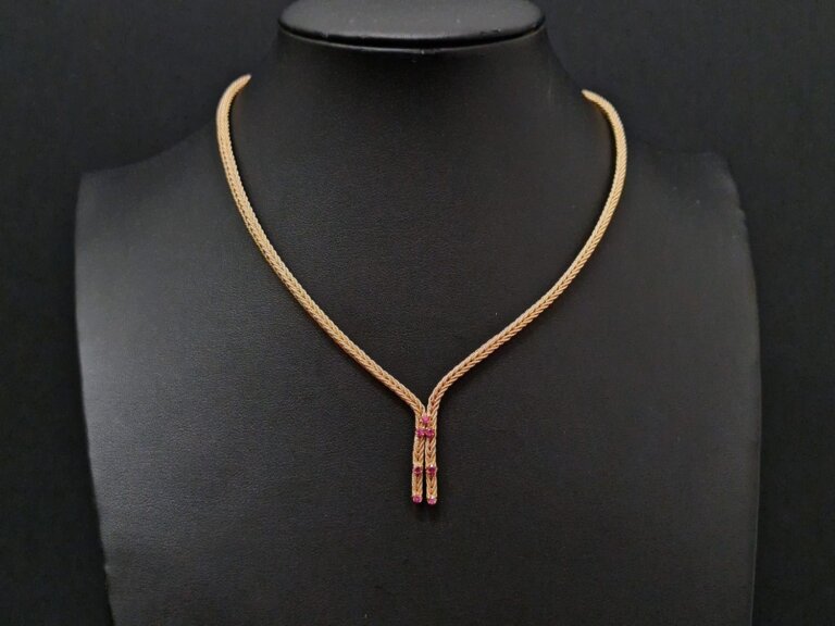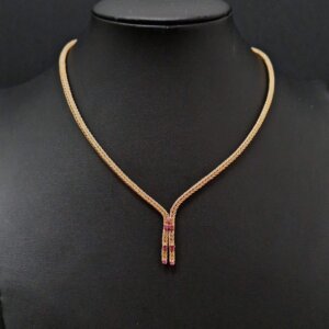 Prodajemo zlatnu ogrlicu od 18-karatnog zlata težine 28,46 grama s rubinima.