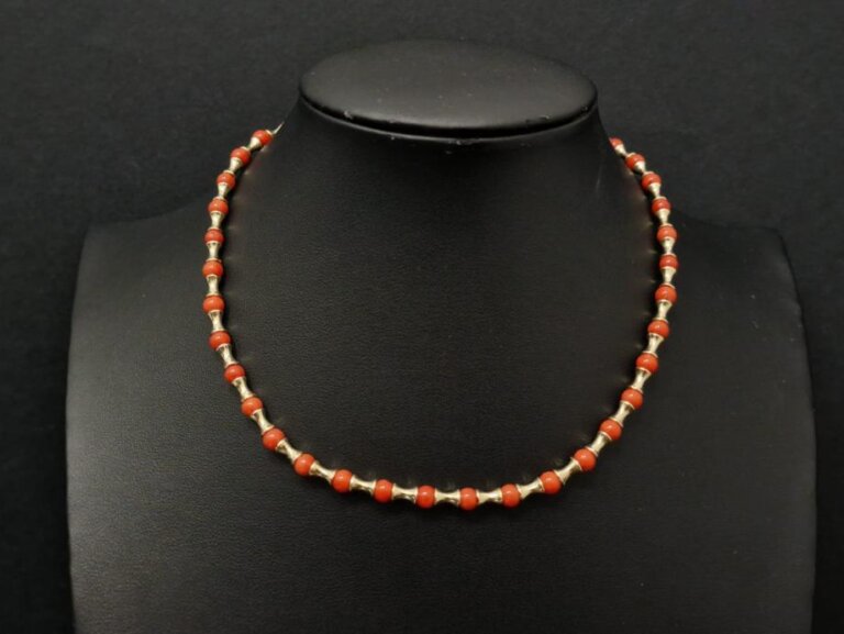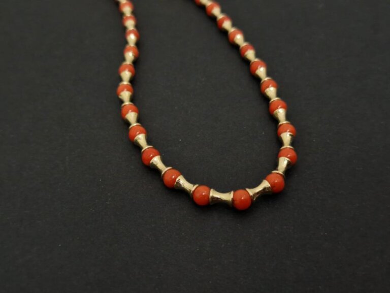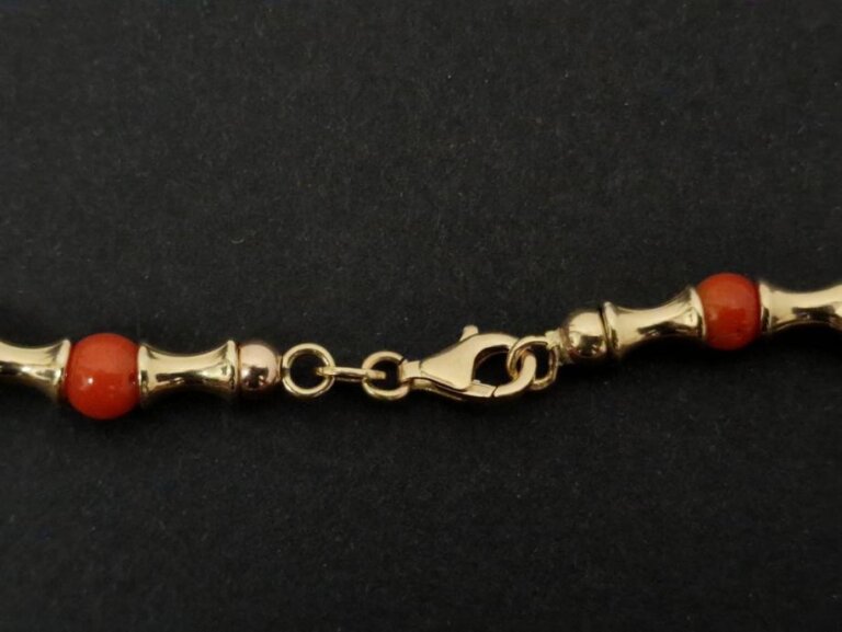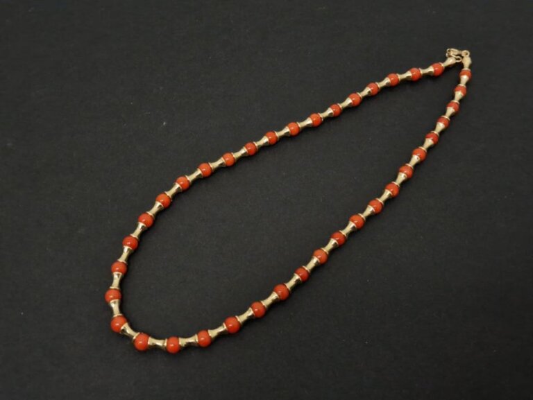 Prodajemo prekrasnu zlatnu ogrlicu od 14-karatnog zlata s koraljima.