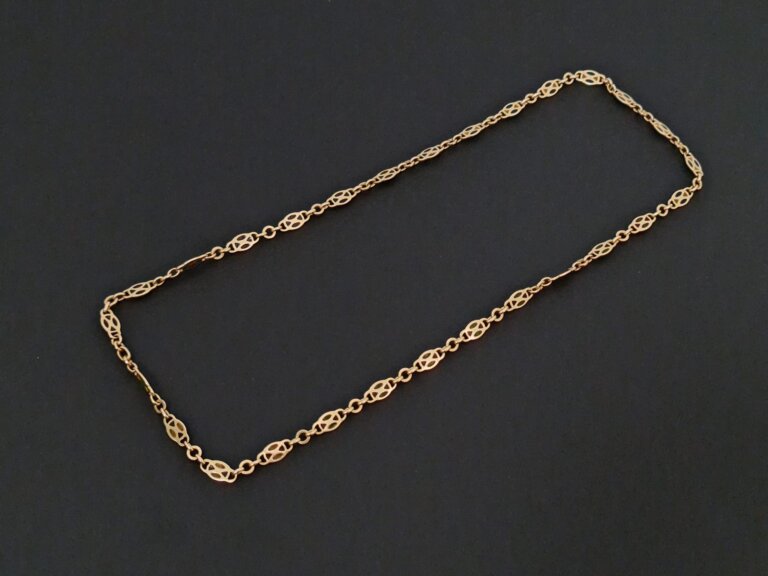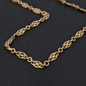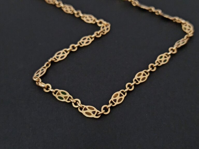Prodajemo lanac od 18 karatnog žutog zlata s detaljima od stakla u boji.