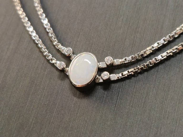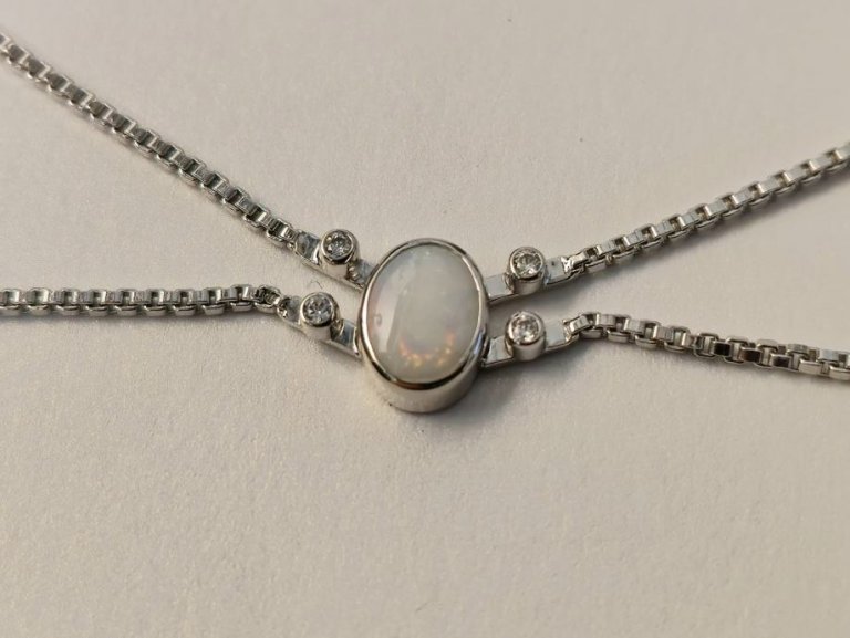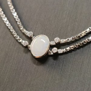 Prodajemo lančić od bijelog 14 karatnog zlata s dijamantima.