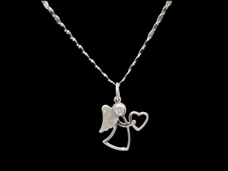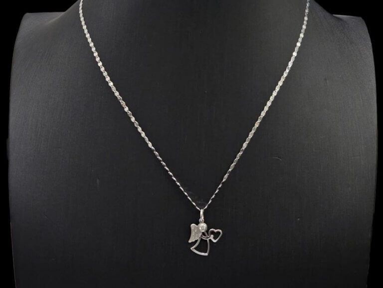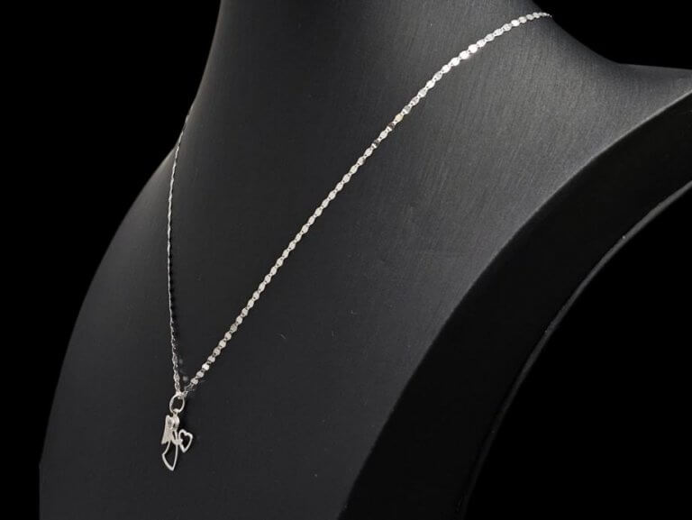 Prodajemo zlatni lančić s privjeskom od 14 karatnog bijelog zlata.