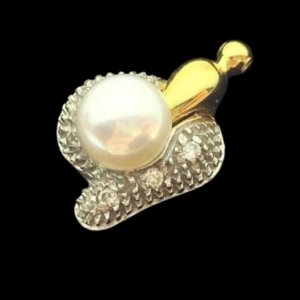 Prodajemo privjesak od 18 karatnog zlata ukrašen sa 5 dijamanata i biserom.