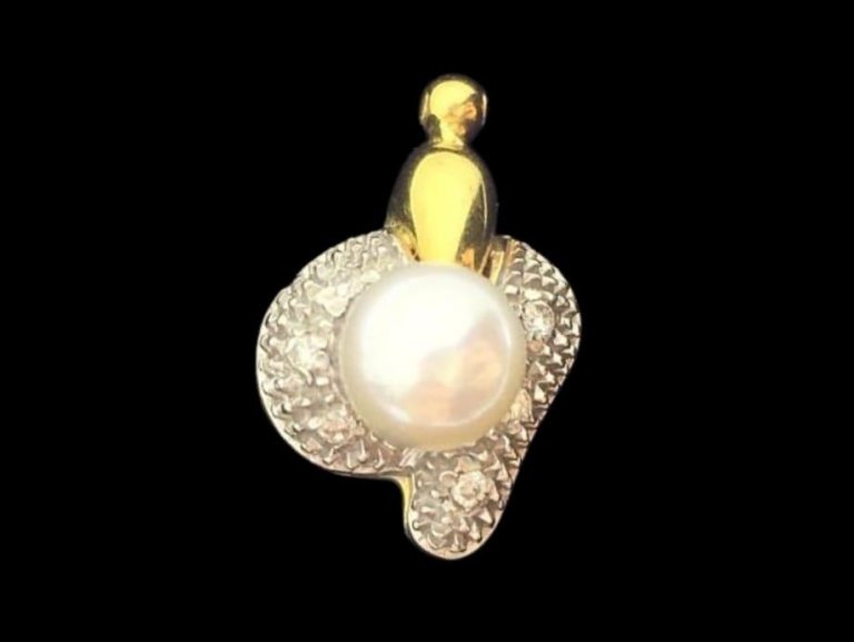Prodajemo privjesak od 18 karatnog zlata ukrašen sa 5 dijamanata i biserom.