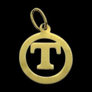Prodajemo zlatni privjesak s motivom slova “T” od 14- karatnog zlata, težine 0,56 grama.