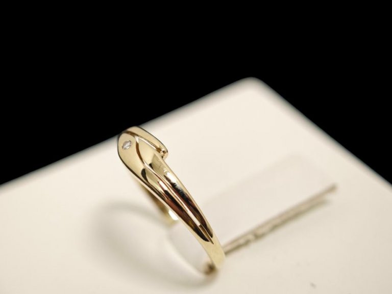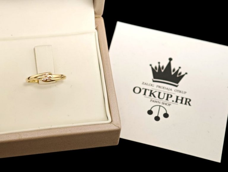 Prodajemo prsten od 14 karatnog zlata ukrašenog s dijamantima.