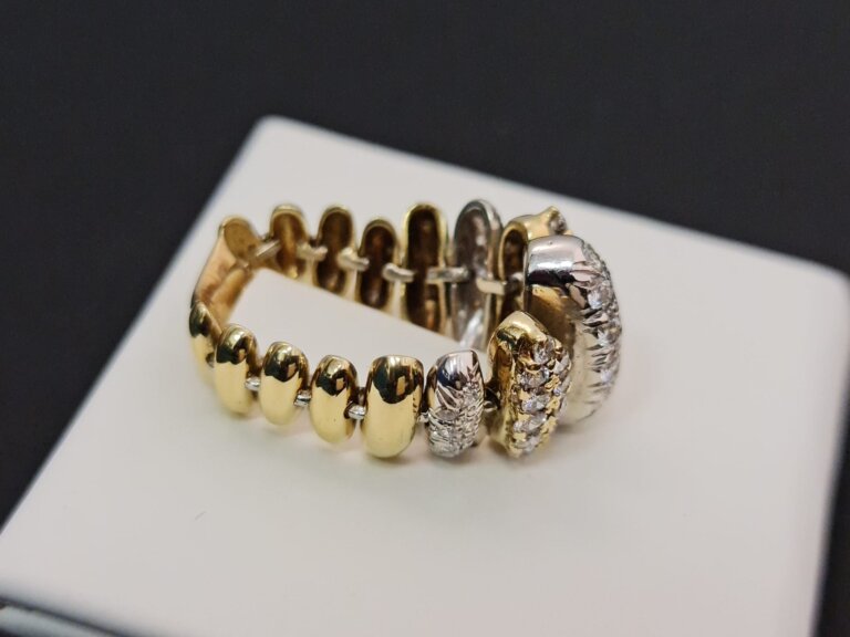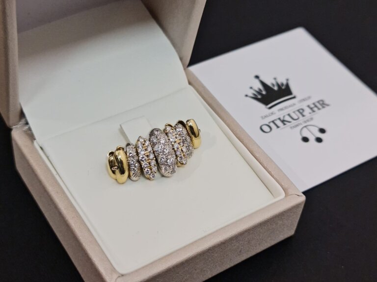 Prodajemo prsten od 18 karatnog zlata ukrašen dijamantima.