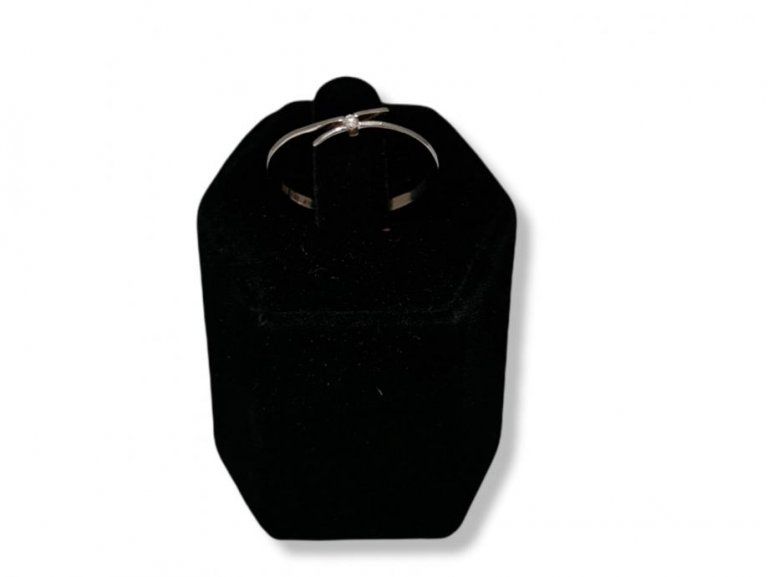 Prodajemo zlatni prsten od 14-karatnog bijelog zlata, težine 1,21 grama.