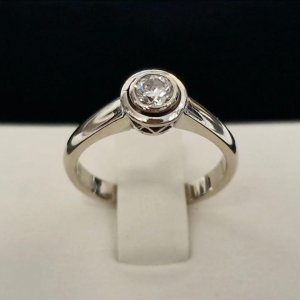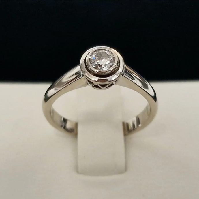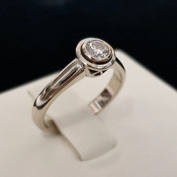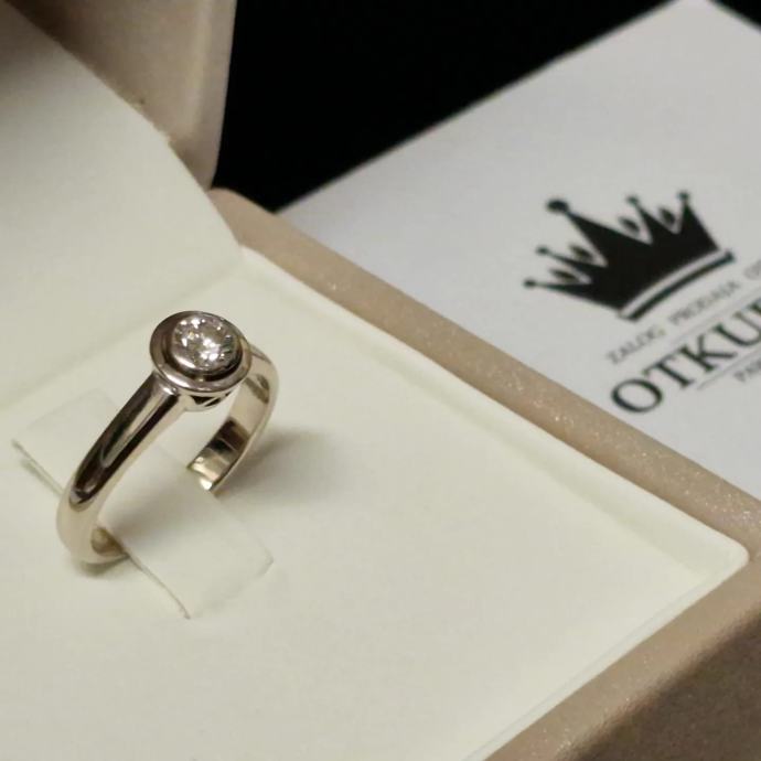 Prodajemo prsten od 14 karatnog bijelog zlata s dijamantom.