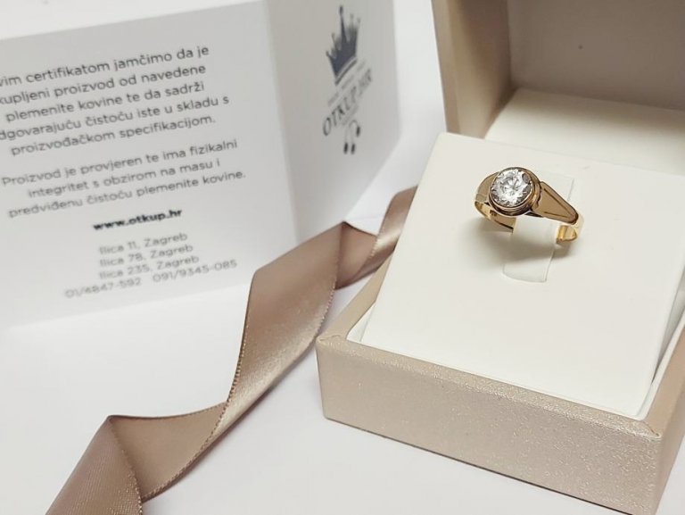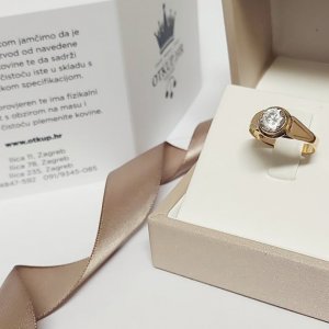 Prodajemo zlatni prsten od 14-karatnog žutog zlata, težine 3,06 grama.