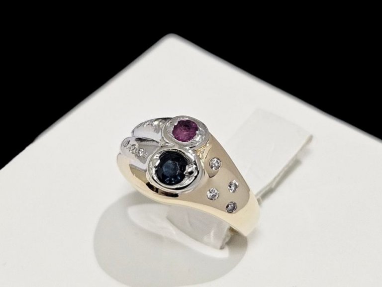 Prodajemo prsten od 14 karatnog žutog i bijelog zlata s dijamantima.