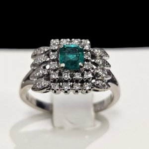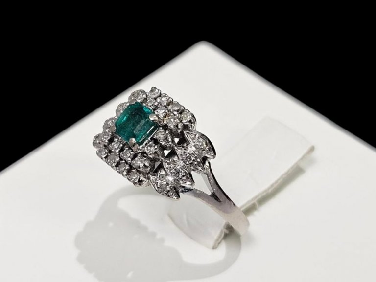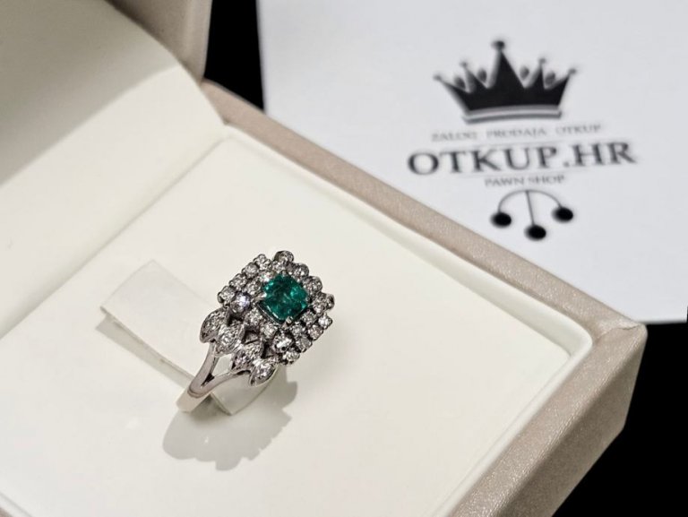 Prodajemo prsten od 14 karatnog bijelog zlata s dijamantima.