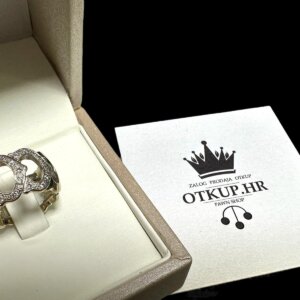 Prodajemo prsten od 14 karatnog zlata ukrašenog sa 21 dijamanata.