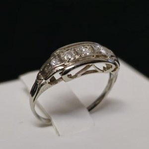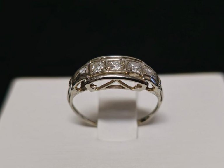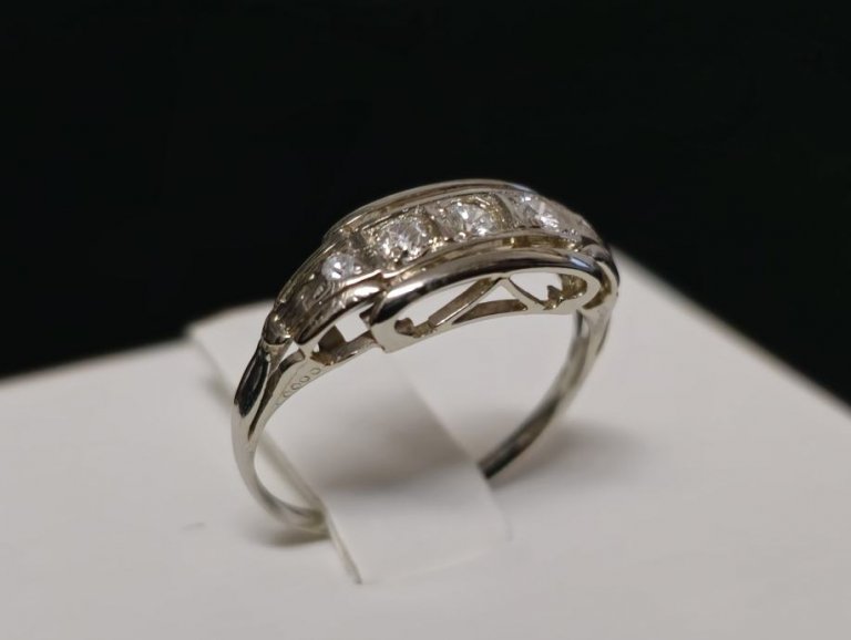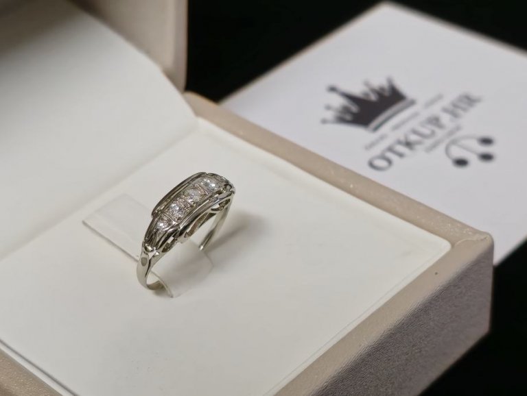 Prodajemo prsten od bijelog 14 karatnog zlata s dijamantima.