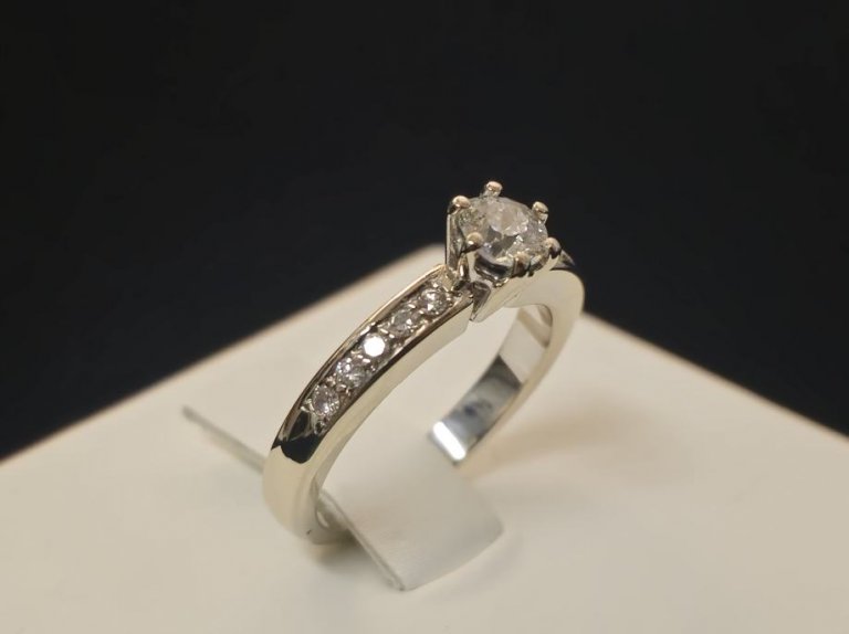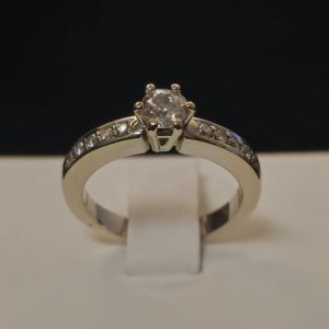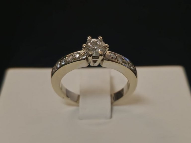 Prodajemo prsten od bijelog 18 karatnog zlata s dijamantima.