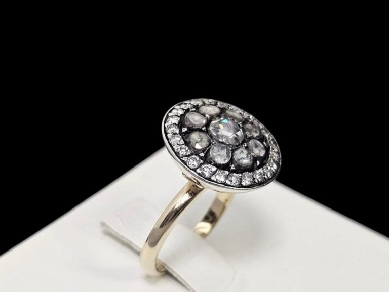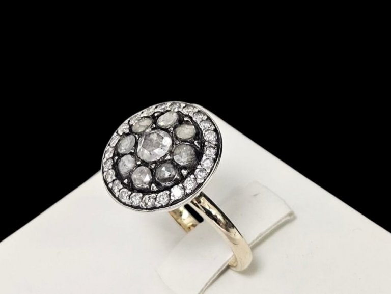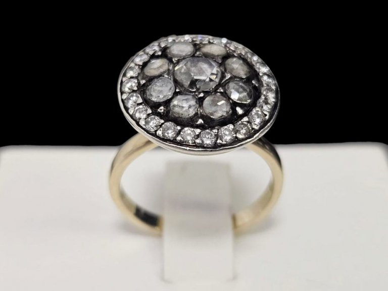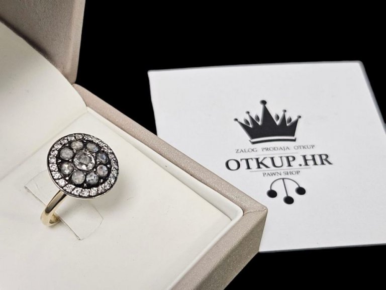 Prodajemo prsten od 14 karatnog bijelog i žutog zlata s dijamantima.