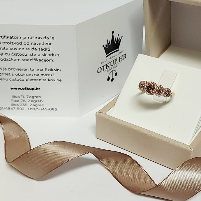Prodajemo zlatni prsten od 14 karatnog zlata sa dijamantima.