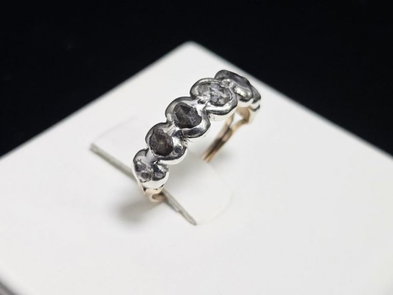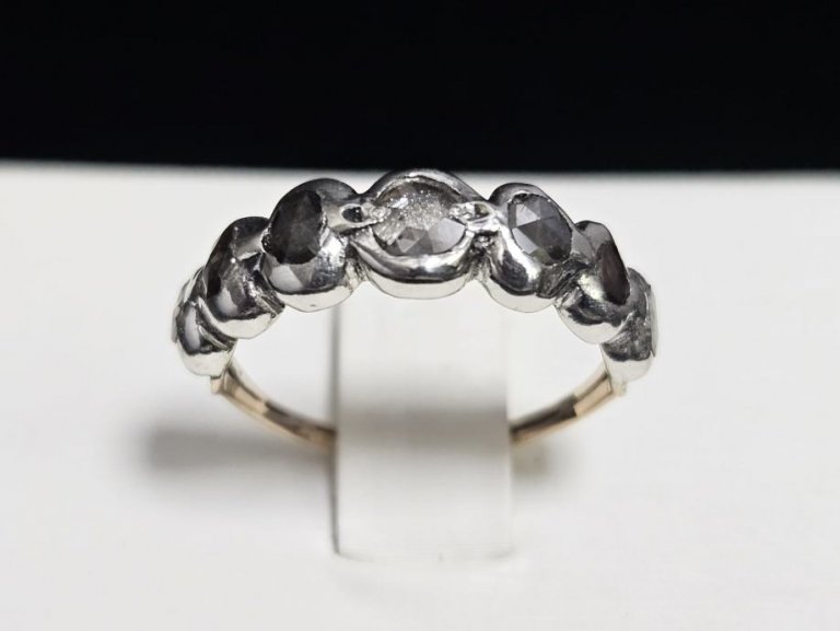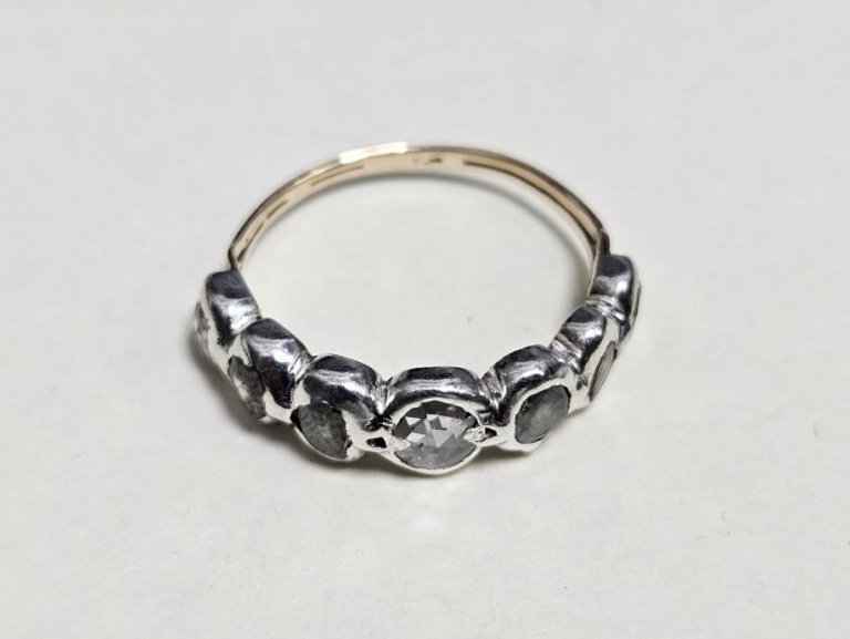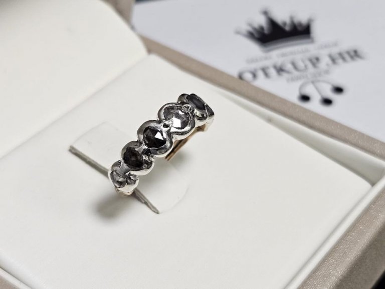 Prodajemo prekrasan prsten od kombinacija 18 karatnog žutog zlata i srebra s nebrušenim dijamantima