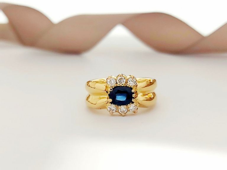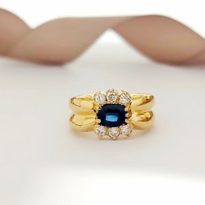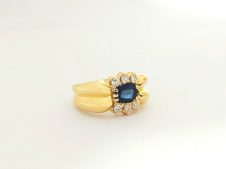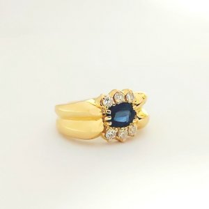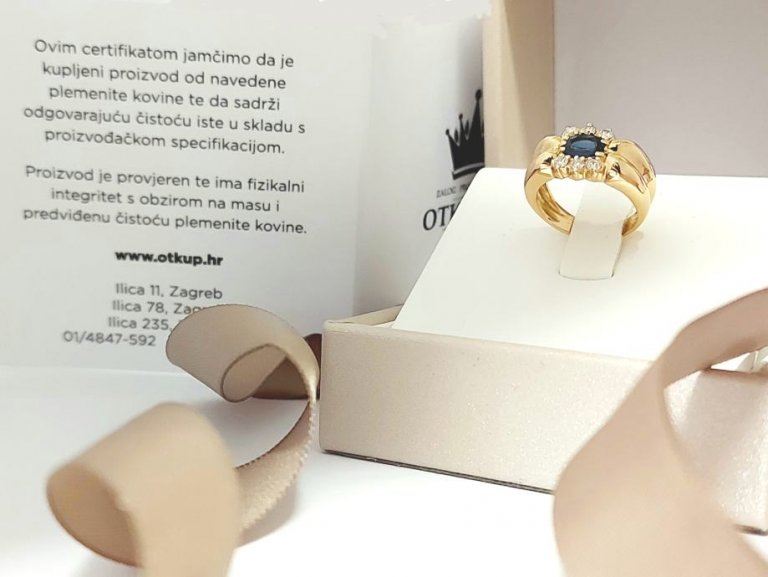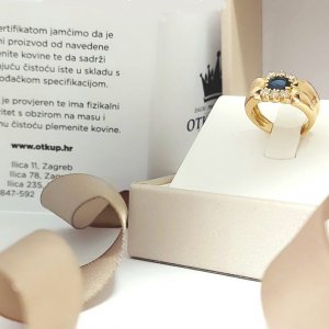 Prodajemo prsten od 18 karatnog žutog zlata s dijamantima i plavim safirom.