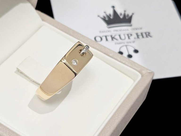 Prodajemo prsten od 18 karatnog žutog i bijelog zlata s dijamantom.