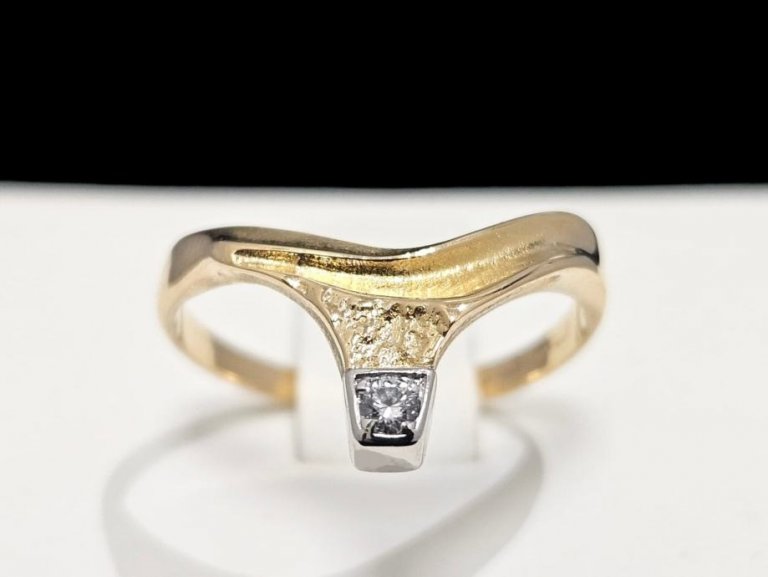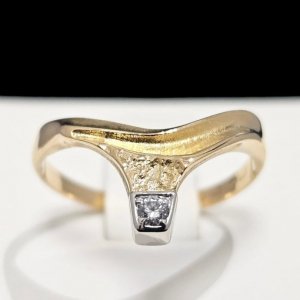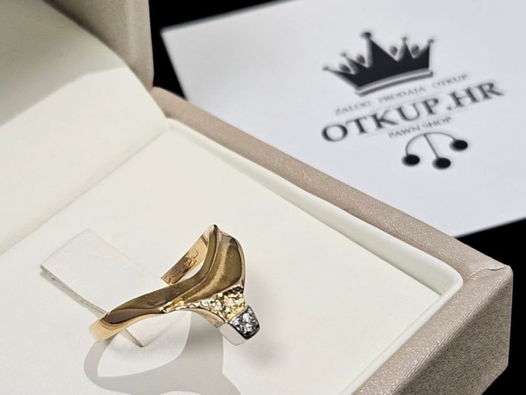 Prodajemo prsten od 18 karatnog žutog i bijelog zlata s dijamantom.