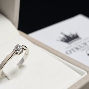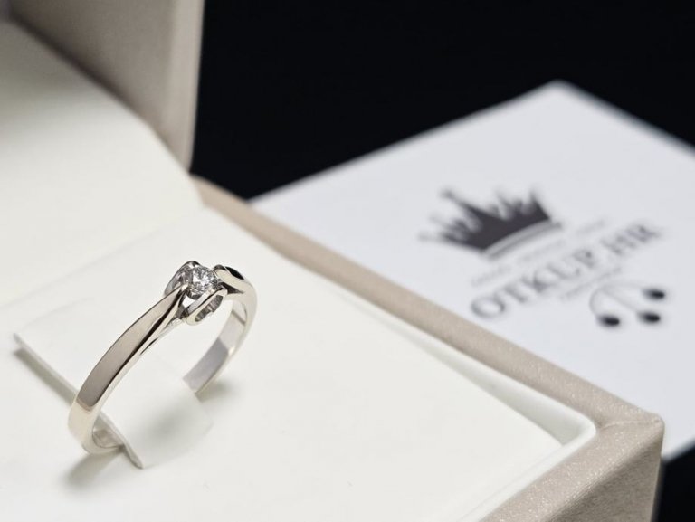 Prodajemo prsten od 14 karatnog bijelog zlata s dijamantom.