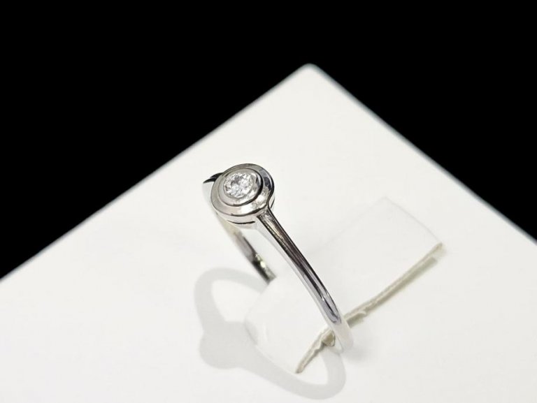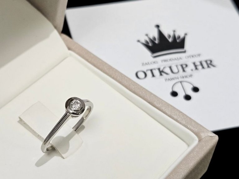 Prodajemo prsten od 14 karatnog bijelog zlata s dijamantom.
