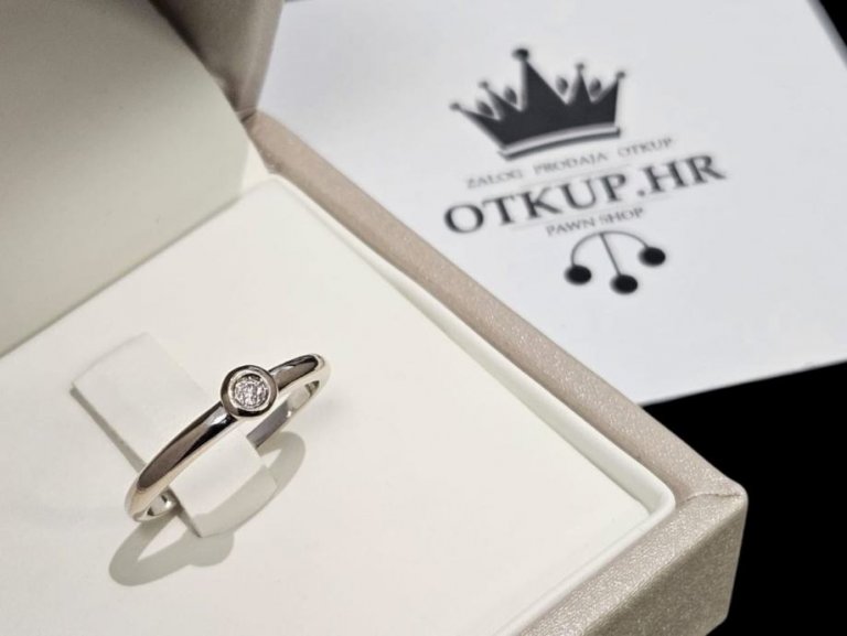 Prodajemo prsten od 8 karatnog bijelog zlata s dijamantom.