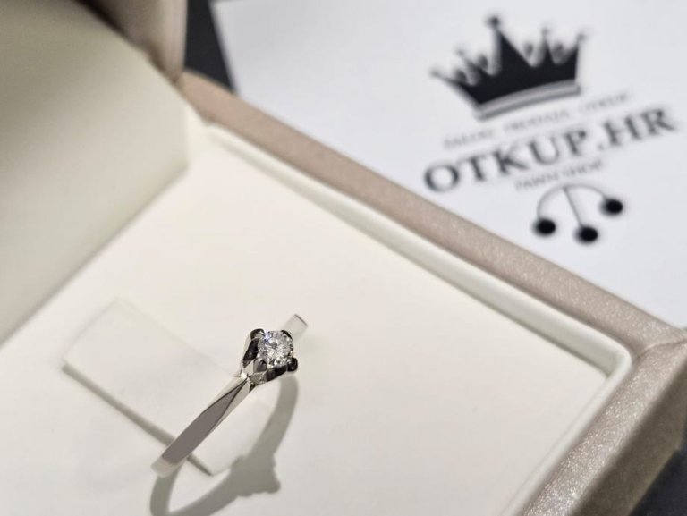 Prodajemo prsten od 14 karatnog bijelog zlata s dijamantom.