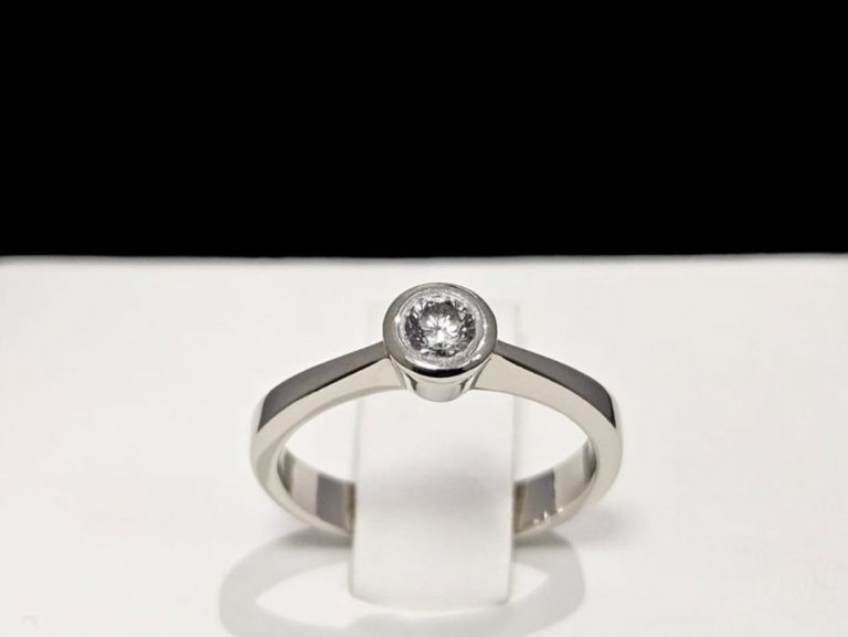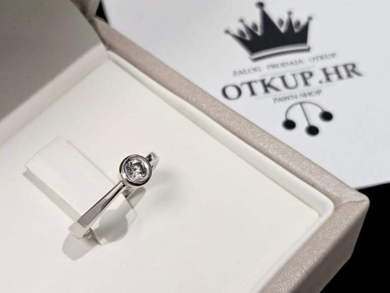Prodajemo prsten od 14 karatnog bijelog zlata s dijamantom.