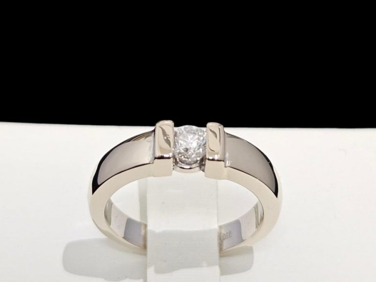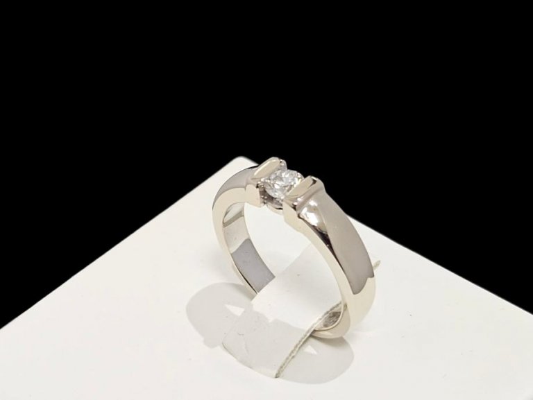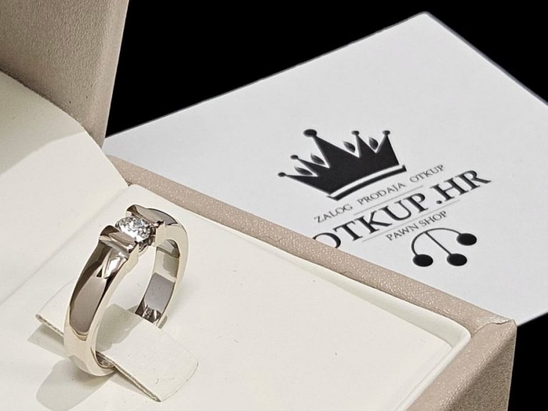 Prodajemo prsten od 18 karatnog bijelog zlata s dijamantom.