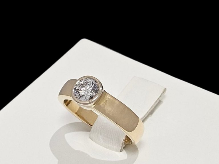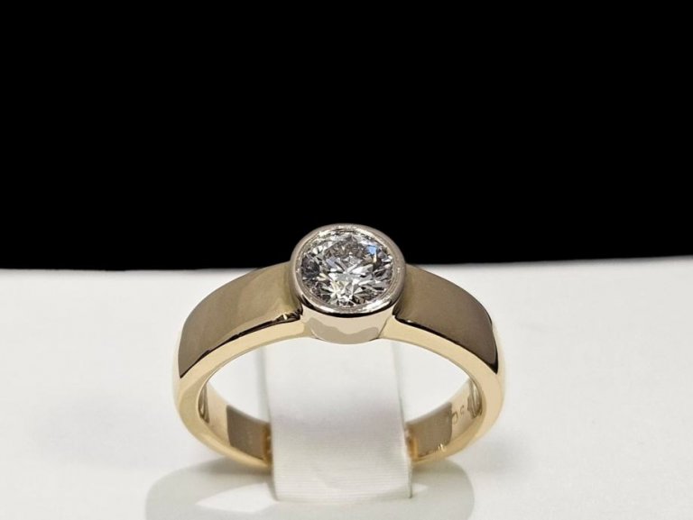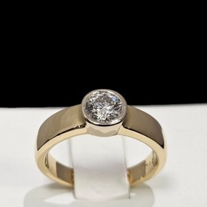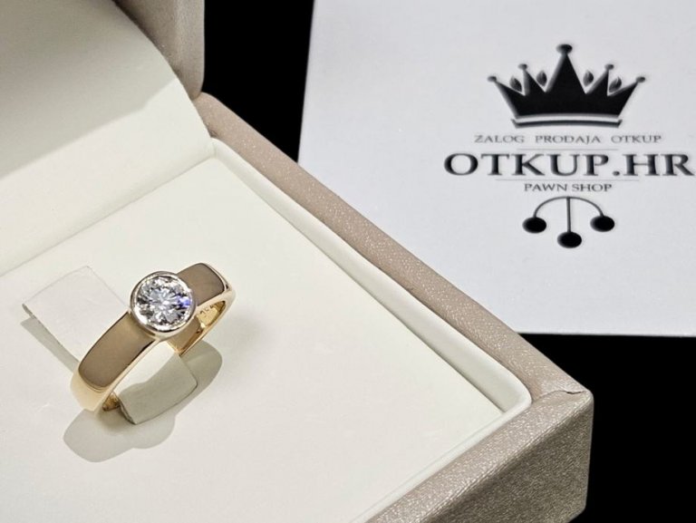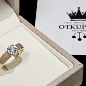 Prsten od 18 karatnog žutog zlata, označen žigom 750, ukupne težine 5.35g, sadrži 1 prirodni dijamant.