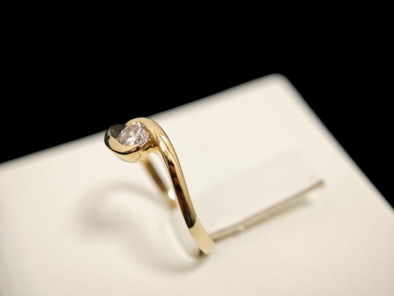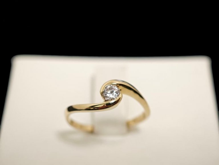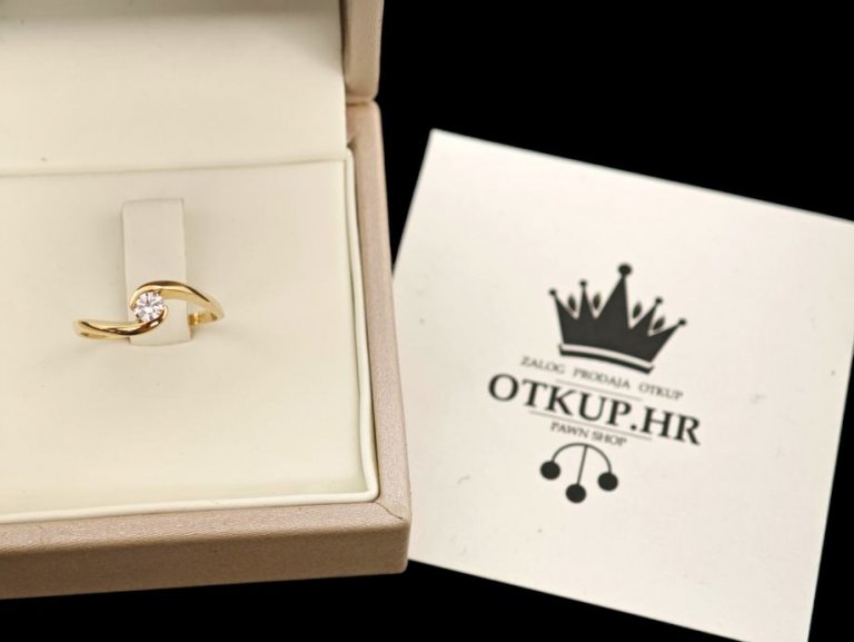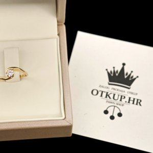 Prodajemo prsten od 14 karatnog zlata ukrašenog sa dijamantom.