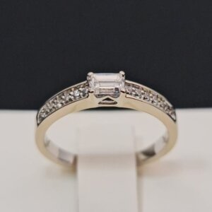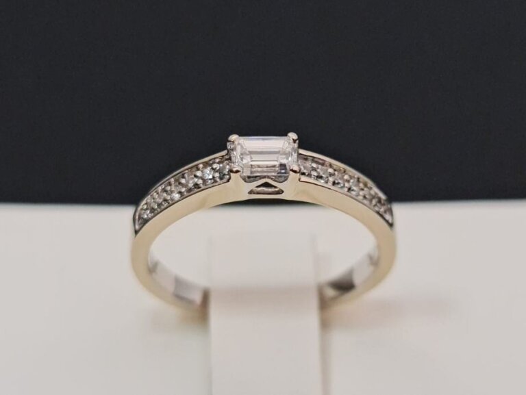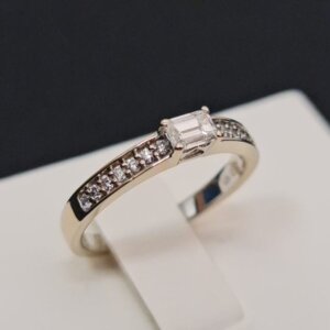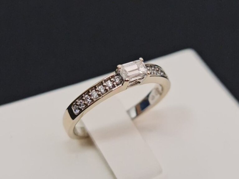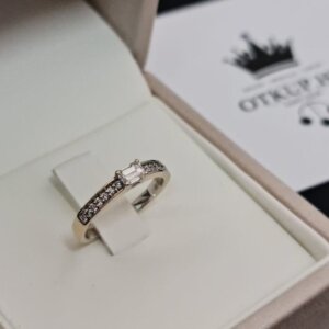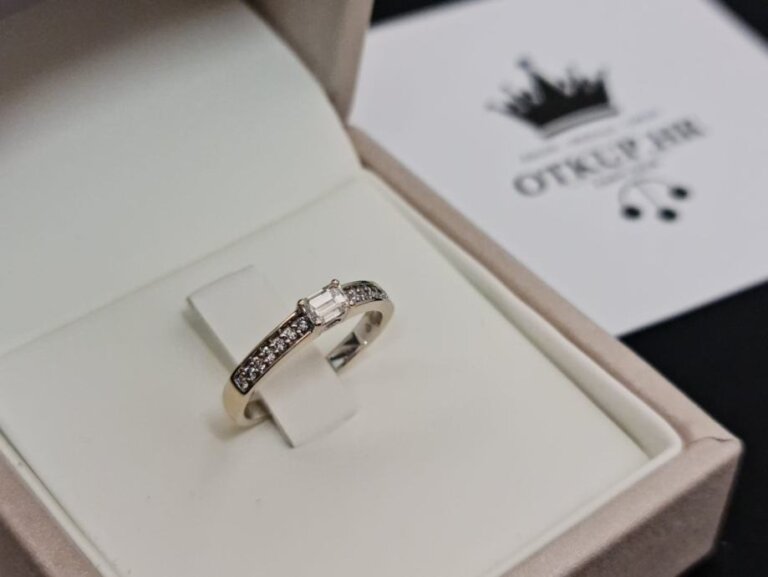 Prodajemo prsten od 18 karatnog bijelog zlata ukrašen sa dijamantima.