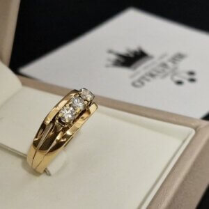 Prodajemo prsten od 18 karatnog žutog zlata s dijamantima briljantnog brusa.