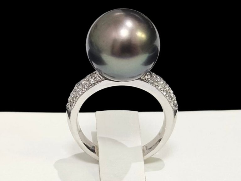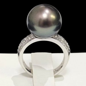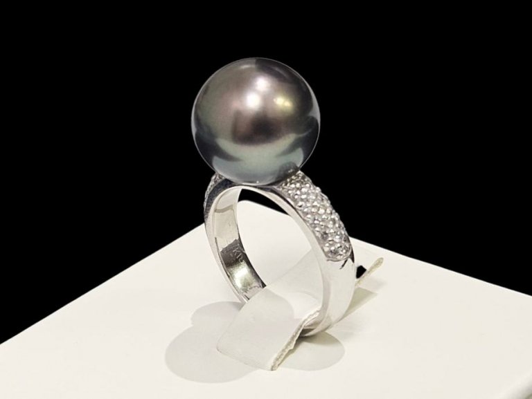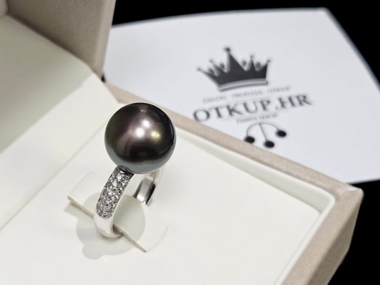 Prodajemo prsten od 18 karatnog bijelog zlata s Tahiti biserom i dijamantima.
