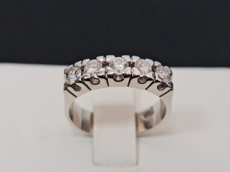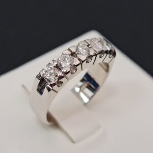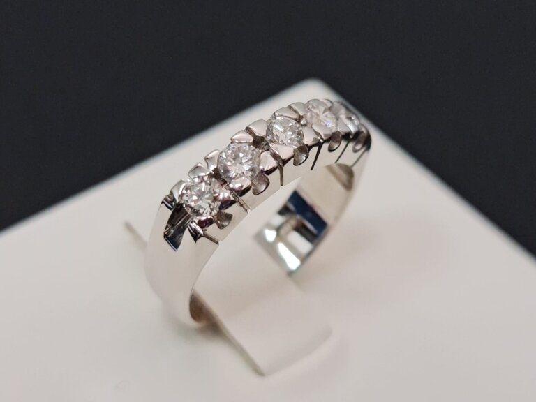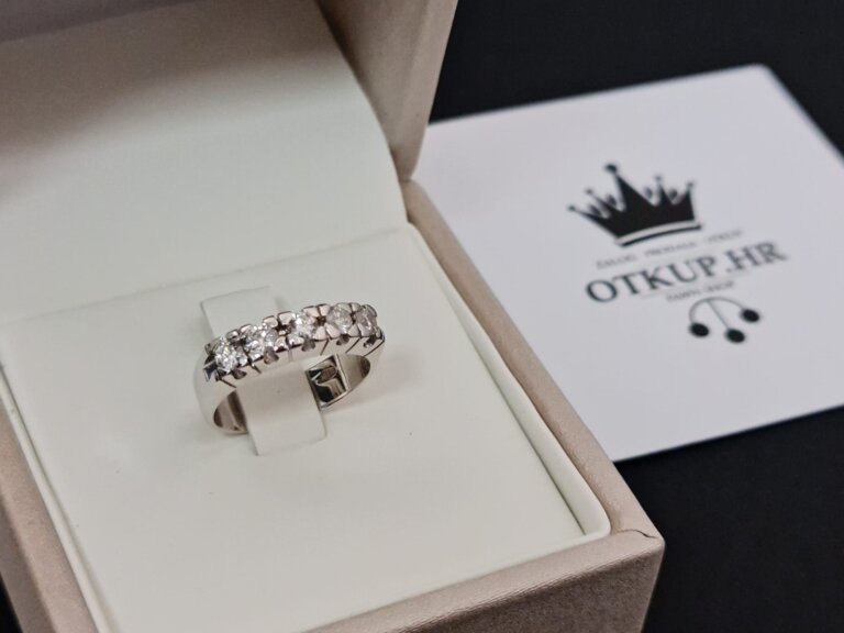 Prodajemo zlatni prsten od 18 karatnog zlata ukrašen dijamantima.