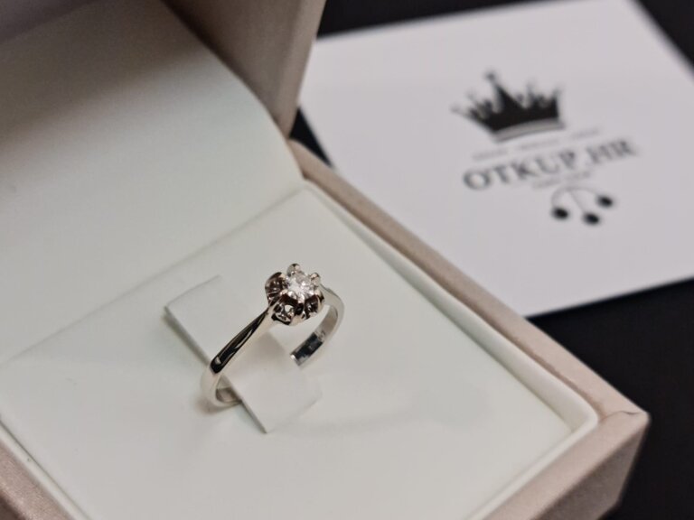 Prodajemo zlatni prsten od 18 karatnog zlata sa dijamantom.